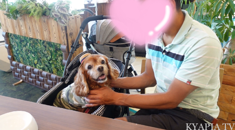 この日は気温が35度あったので、心臓病もちのアンちゃんはカートで移動とカフェのみ。