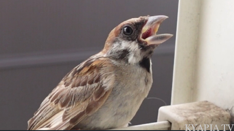窓にドンと当たったかと思って開けたらスズメちゃんが。