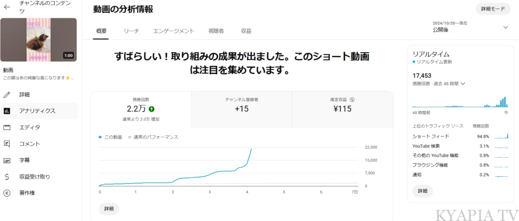 YouTubeさん(AI様?(笑))からお褒めの言葉・・・