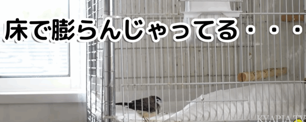 この子はカノコスズメなのですが、換羽の時に羽を膨らませてジッとする子、こういう子は一気に体調が悪化する子が多いです。