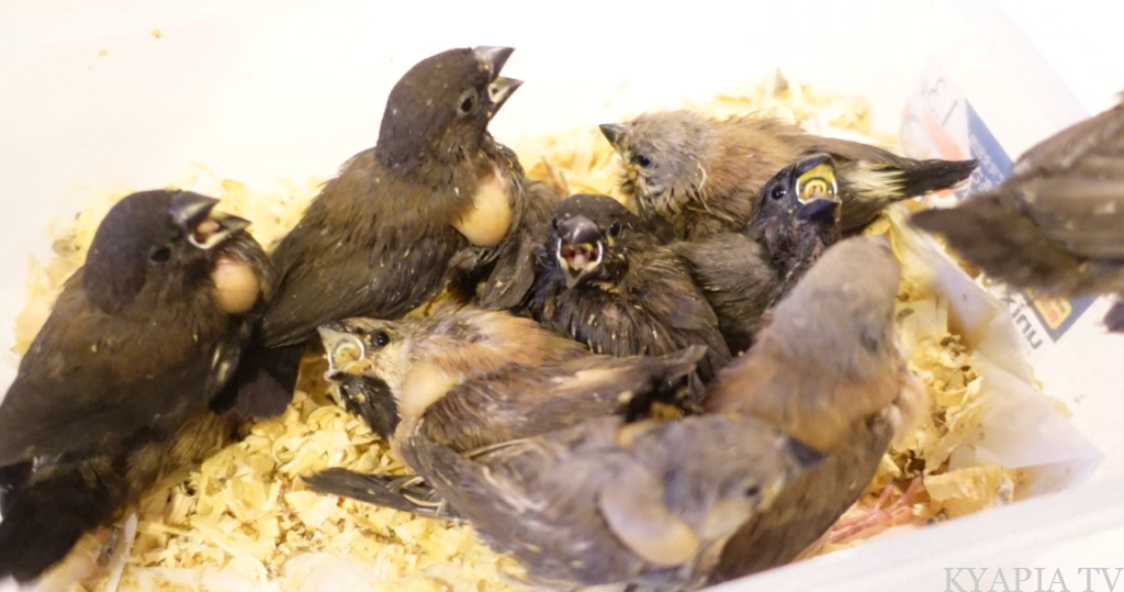 こちらはジュバシキンセイチョウ、ヨーロッパジュウシマツ、キンカチョウの雛たちです。