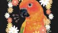 セキセイインコの中でも人気のパステルレインボーの子のイラストを色鉛筆で描きました。